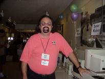 John Morrison, another SCOUG volunteer, is wearing a classic Team OS/2 t-shirt.